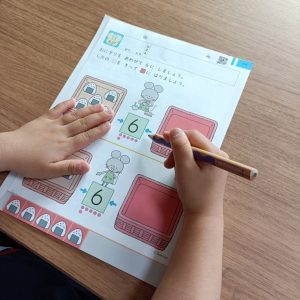 筆をとる時間は、心を落ち着かせ、集中する力や姿勢づくりの基礎を育てる大切な学びです。書くことを楽しむ気持ちを大切にしながら、文字への興味を豊かに育んでいきます。